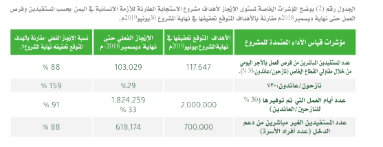 ليصبح إجمالي ما تم صرفه مبلغ 72.027 مليون دولارا وهو ما يمثل 85 % من تكلفة التمويل/ المستهدف والبالغ 85مليون دولارا حتى نهاية مشروع الاستجابة الطارئة للأزمة الإنسانية في اليمن بنهاية يونيو2019م.